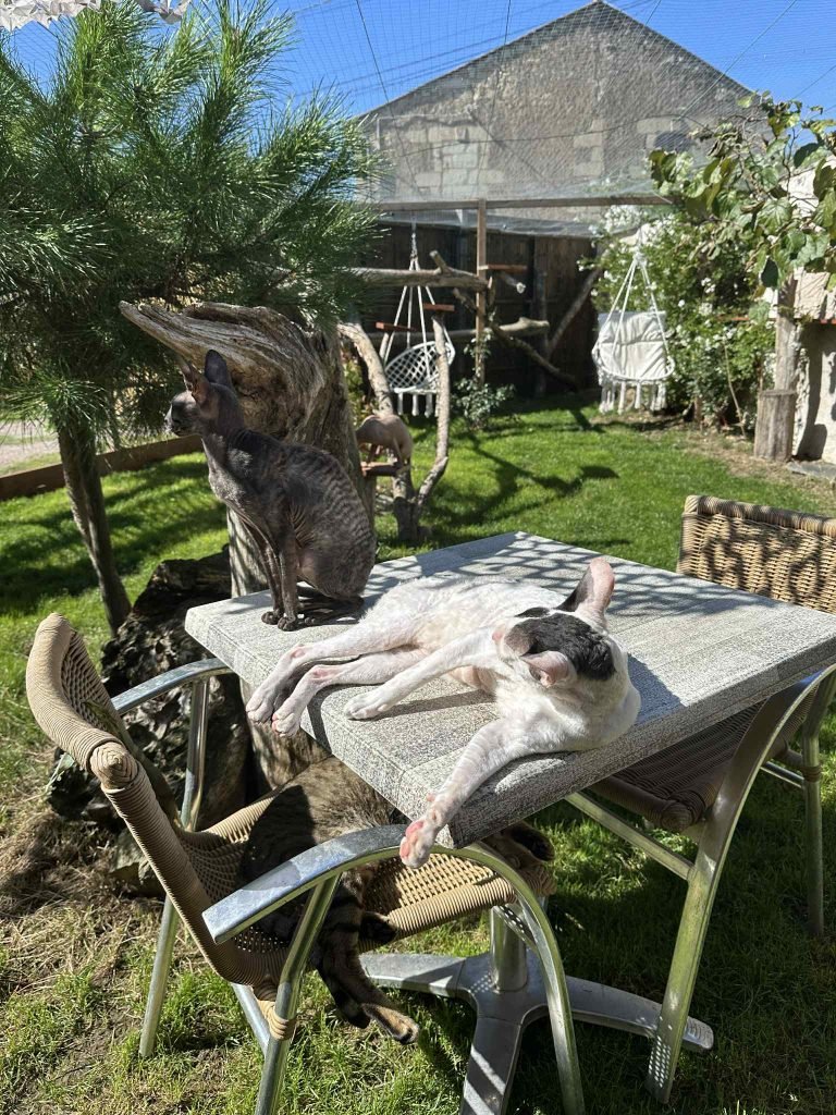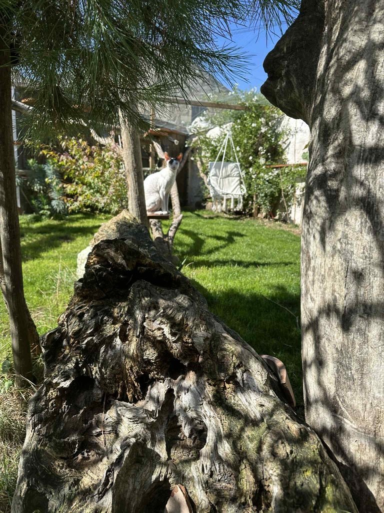 Le jardin est entièrement sécurisé pour que les chats puissent en profiter.